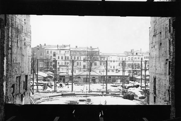 Schauspielhaus, Blick vom Bühnenhaus auf Hofstraße, Untermainkai, 1949 / © Institut für Stadtgeschichte